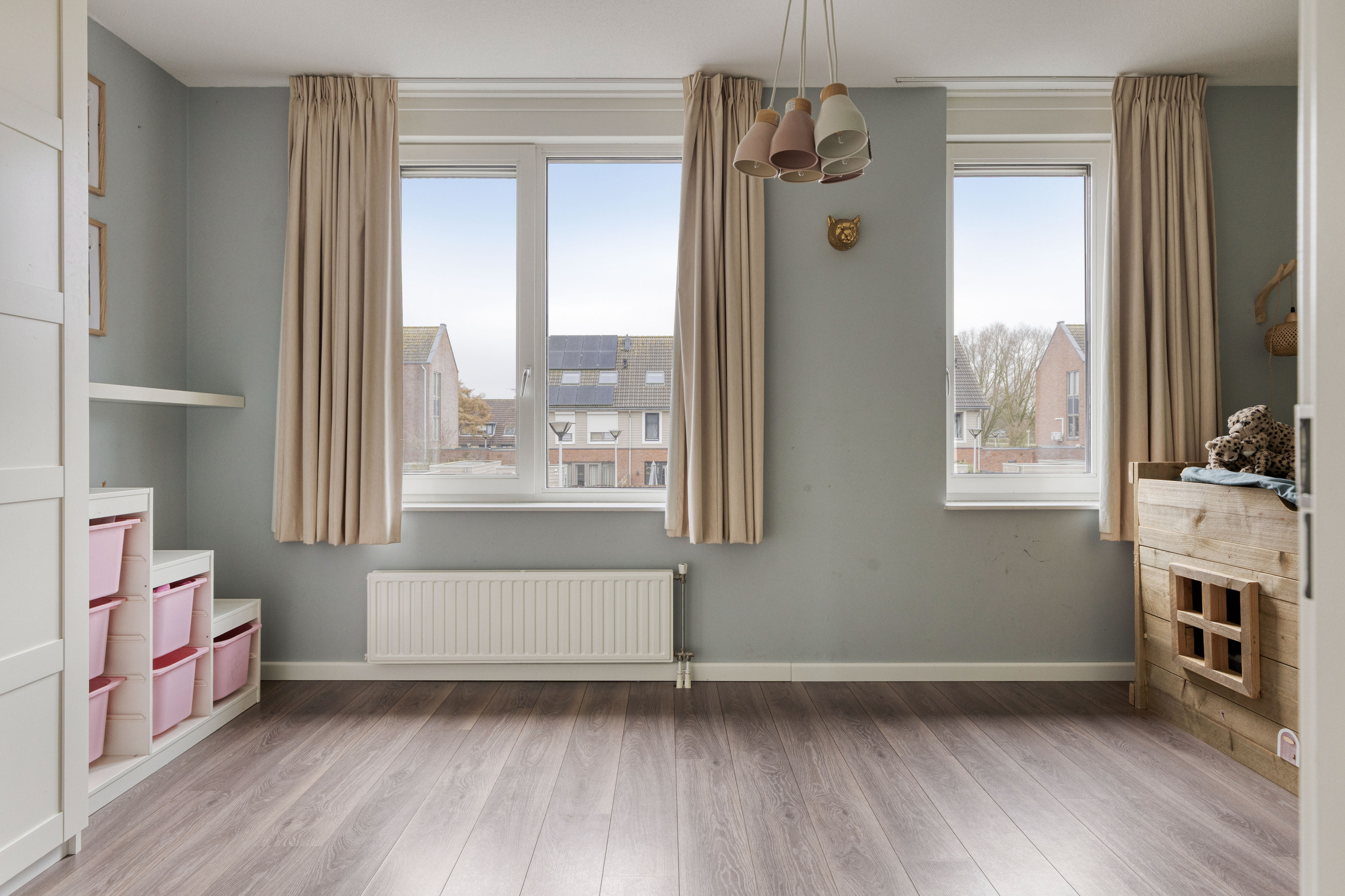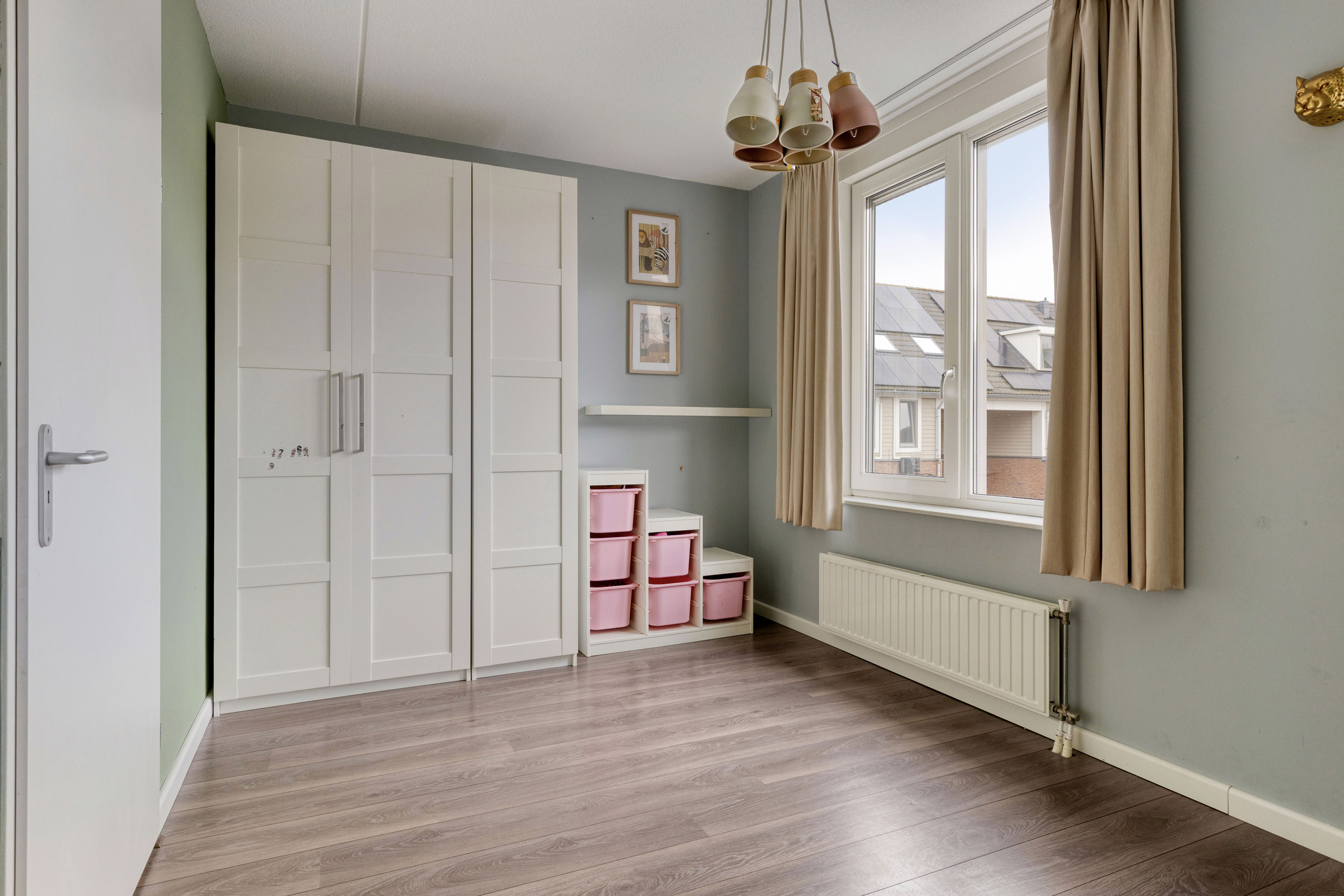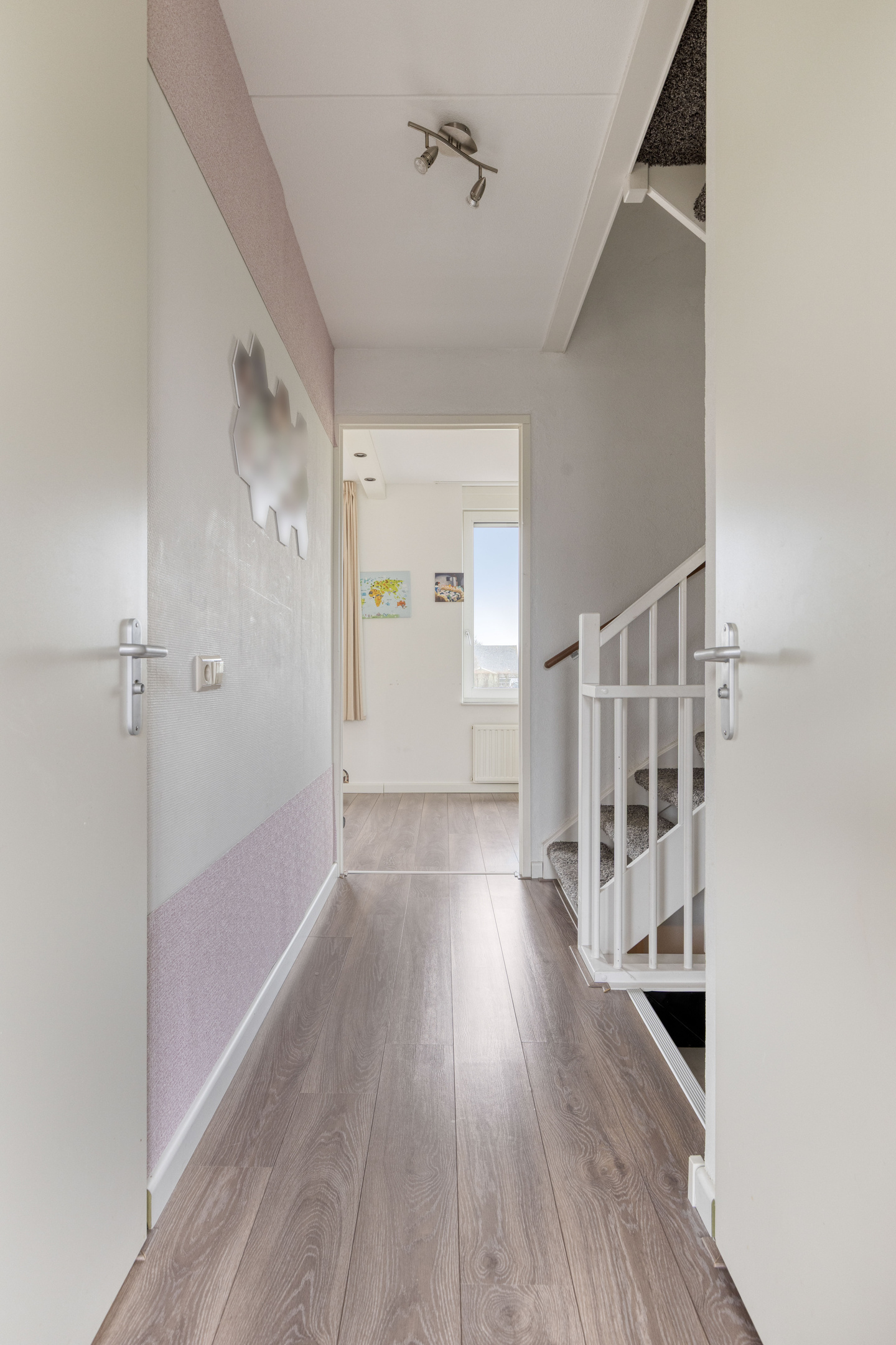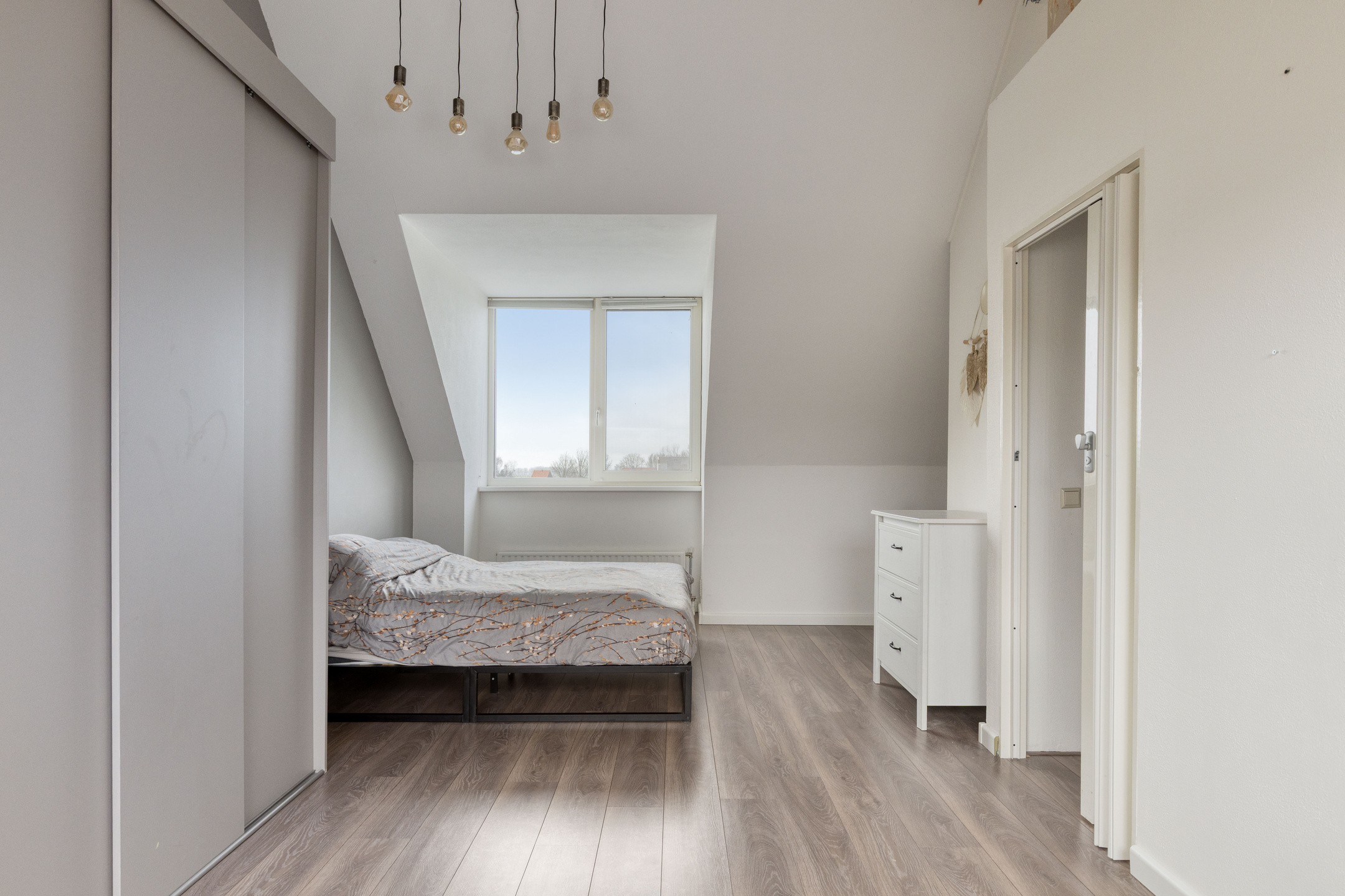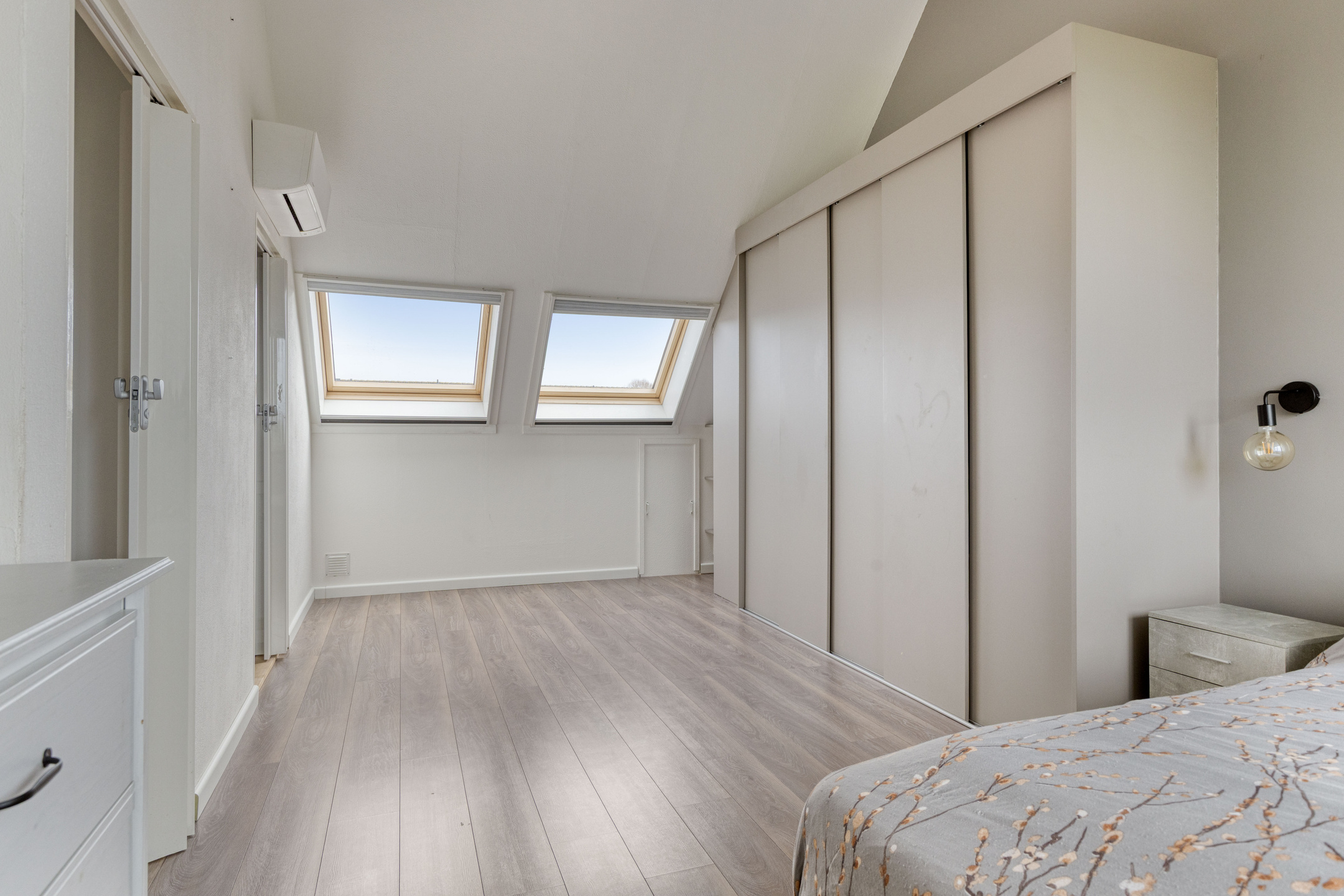 2e verdieping: vaste trap; royale slaapkamer van 25 m2, met hoge nok, airconditioning, schuifkastenwand, dakkapel aan de voorzijde en 2x tuimelraam; technische ruimte met aansluiting wasmachine, plaats voor een droger, opstelling combiketel en warmte terugwininstallatie; de 2e verdieping is afgewerkt met een laminaatvloer en glad gestuukte wanden. Het is mogelijk een extra slaapkamer te realiseren op deze woonlaag.
