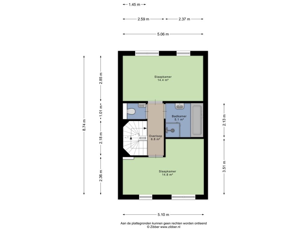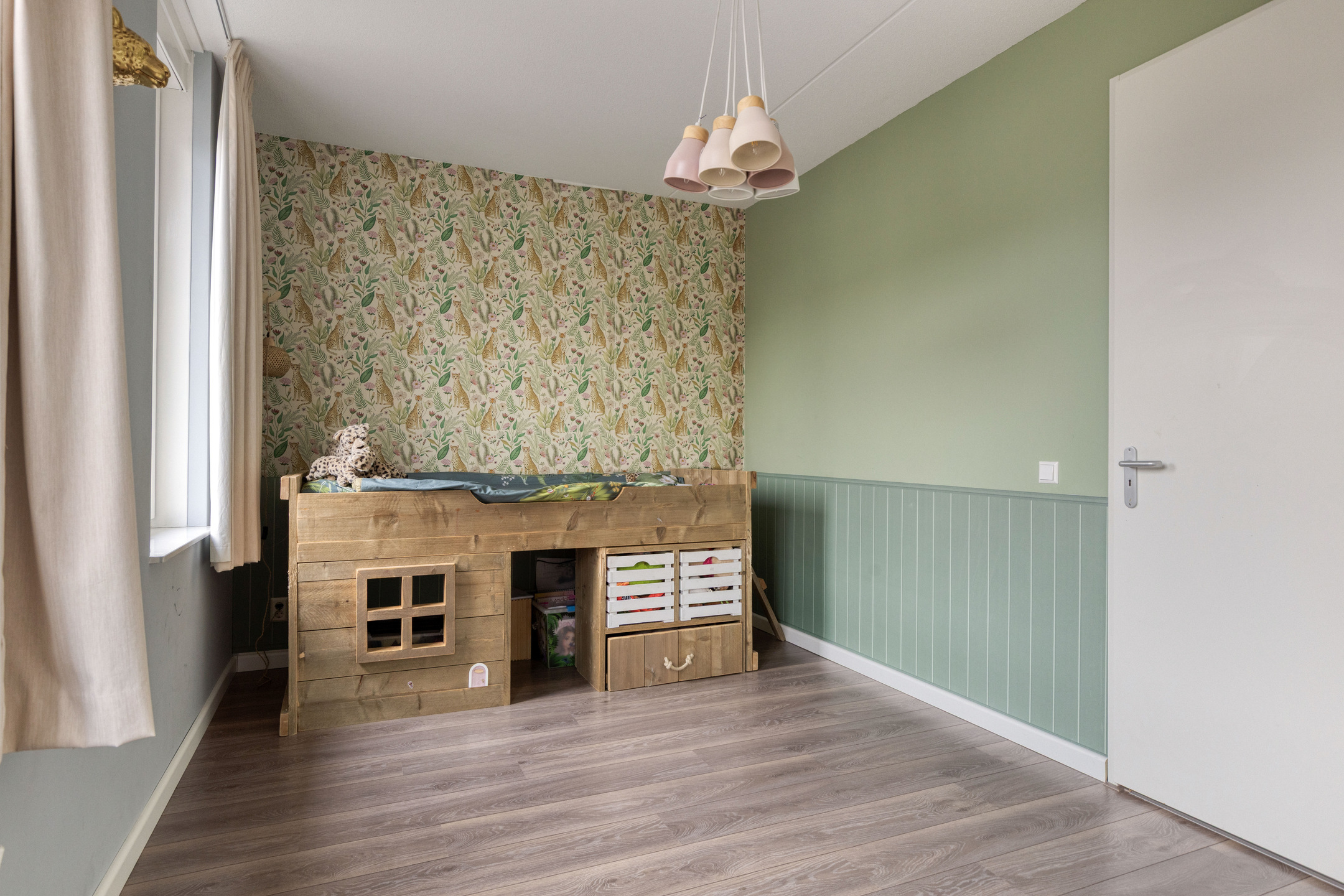1e verdieping: overloop met spachtelputzwanden en separaat 2e toilet v.v. vrijhangend closet en handwasbakje; grote achterslaapkamer van 14,4 m2; moderne badkamer met wastafel, handdoekradiator, ligbad en een doucheruimte; grote voorslaapkamer van 14,8 m2, met fraai vrij uitzicht op polderlandschap; de 1e verdieping heeft rechte gevels en is afgewerkt met een laminaatvloer en deels glad gestuukte wanden en plafonds. Het is mogelijk een extra slaapkamer te realiseren op deze woonlaag.