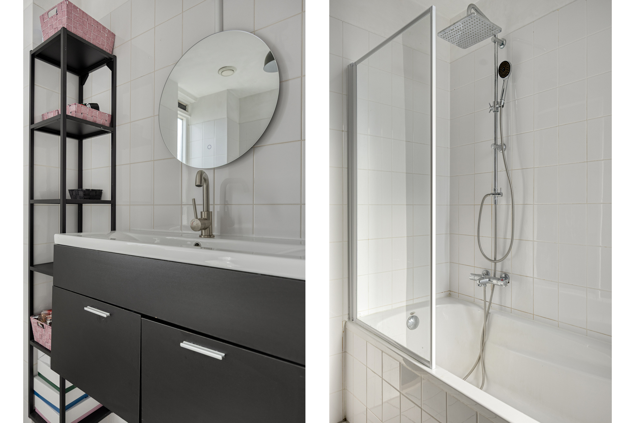 1e verdieping: overloop; achterslaapkamer; grote achterslaapkamer; voorslaapkamer; badkamer met ligbad v.v. douchescherm, 2e toilet en wastafelmeubel; de 1e verdieping heeft rechte gevels en is afgewerkt met een laminaatvloer.