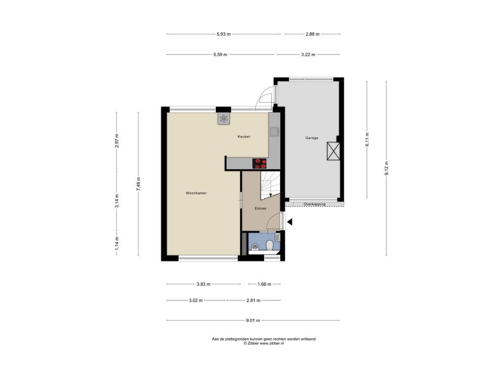 Aangebouwde garage van 18 m2 met roldeur, betonnen vloer, elektra, separate deur naar de achtertuin en grote zolderruimte van 18 m2 met zijraam.