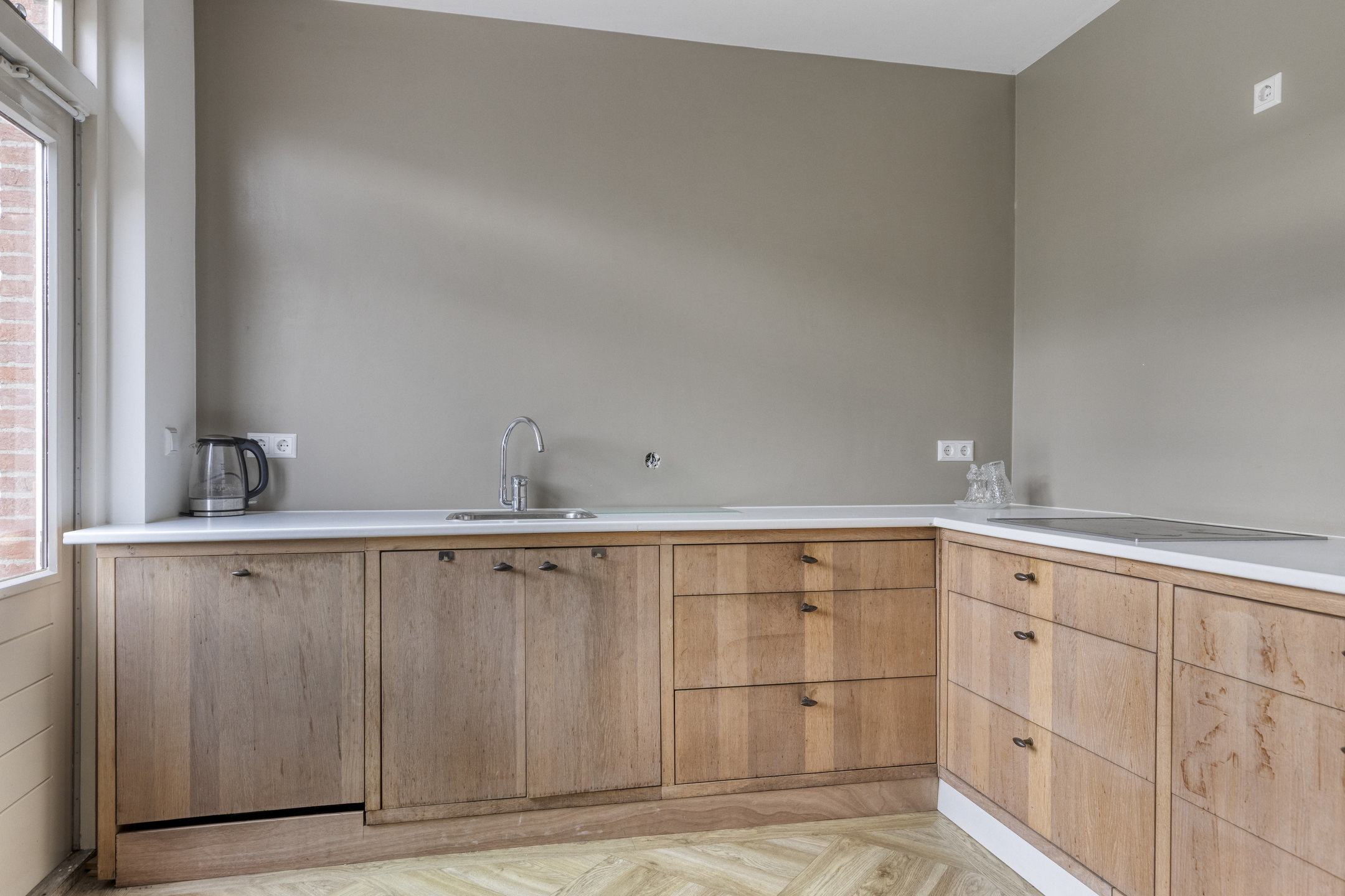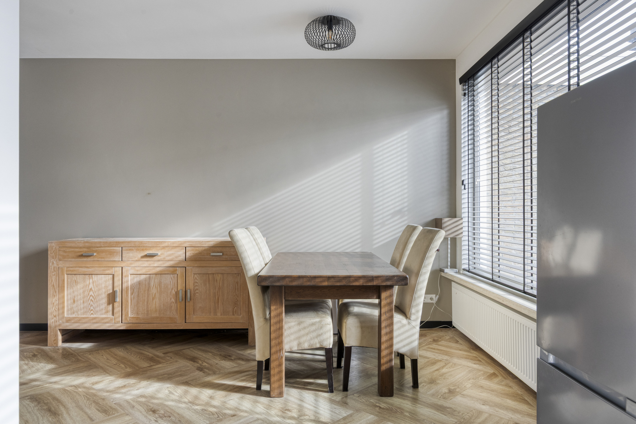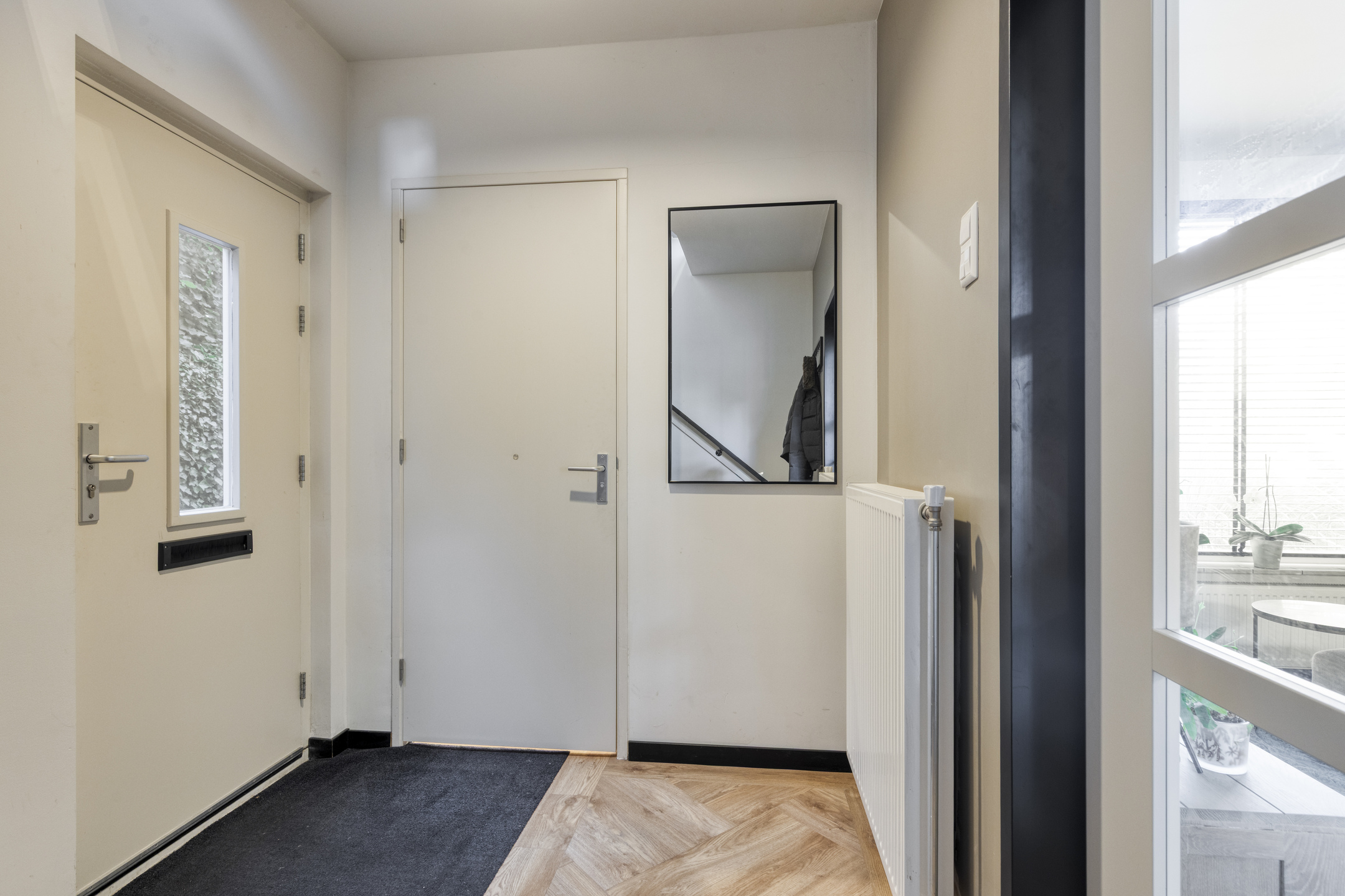 Begane grond: zijentree; ruime hal met trapopgang, groot modern toilet (vergroot) v.v. vrijhangend closet, handwasbakje en meterkast, en de toegang tot de woonkamer; doorzonwoonkamer; halfopen keuken met hoekopstelling v.v. houten front, vaatwasmachine en inductie kookplaat (koelkast los), deur naar de achtertuin; de begane grond is modern afgewerkt met een pvc vloerafwerking en glad gestuukte wanden en plafonds.