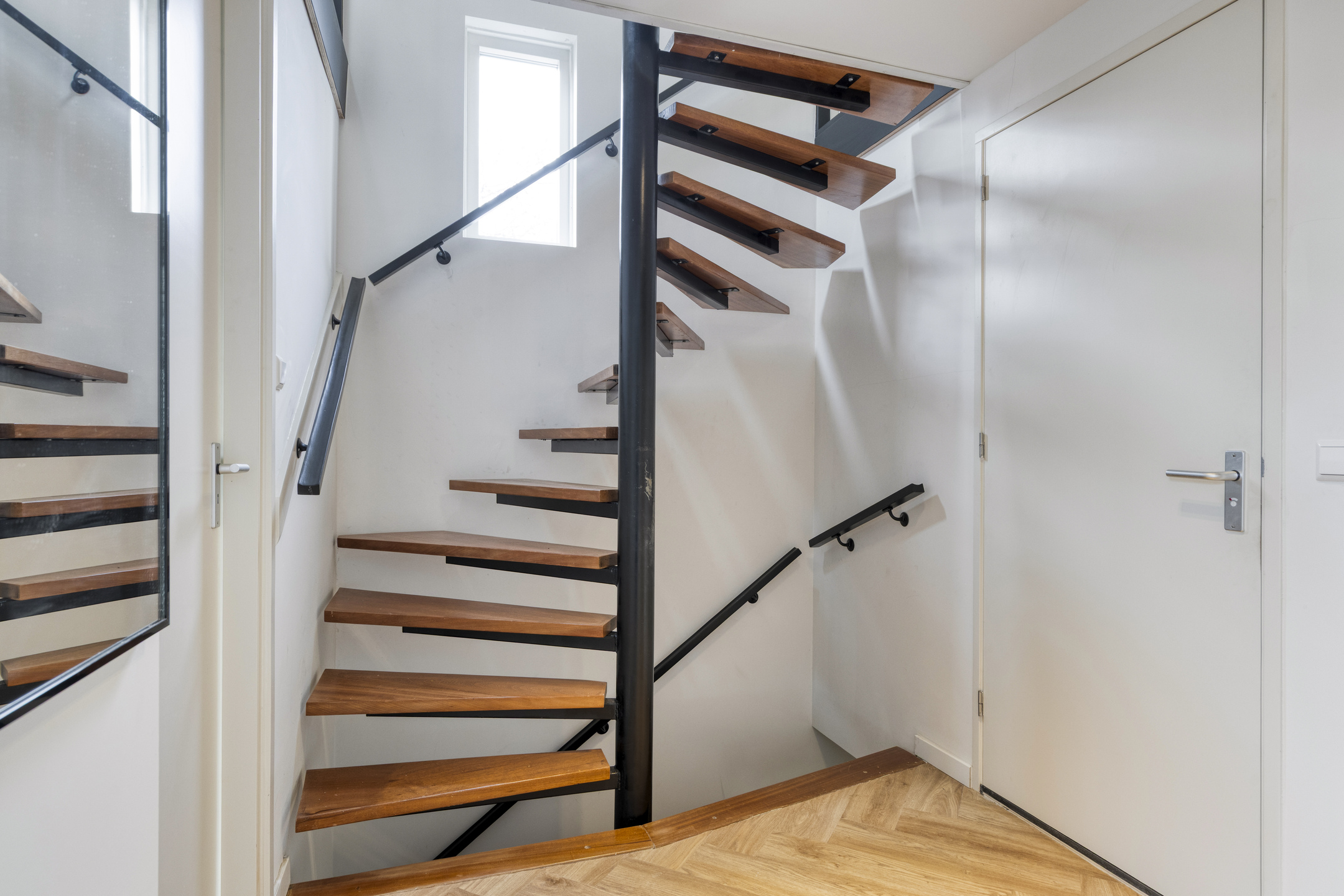 2e verdieping: vaste trap; zijraam in het trapgat; grote overloop met aansluiting wasmachine en opstelling combiketel (Atag HR, 2017); royale 4e slaapkamer met brede dakkapel; de 2e verdieping is modern afgewerkt met een laminaat vloerafwerking en glad gestuukte wanden en dakafwerking.
