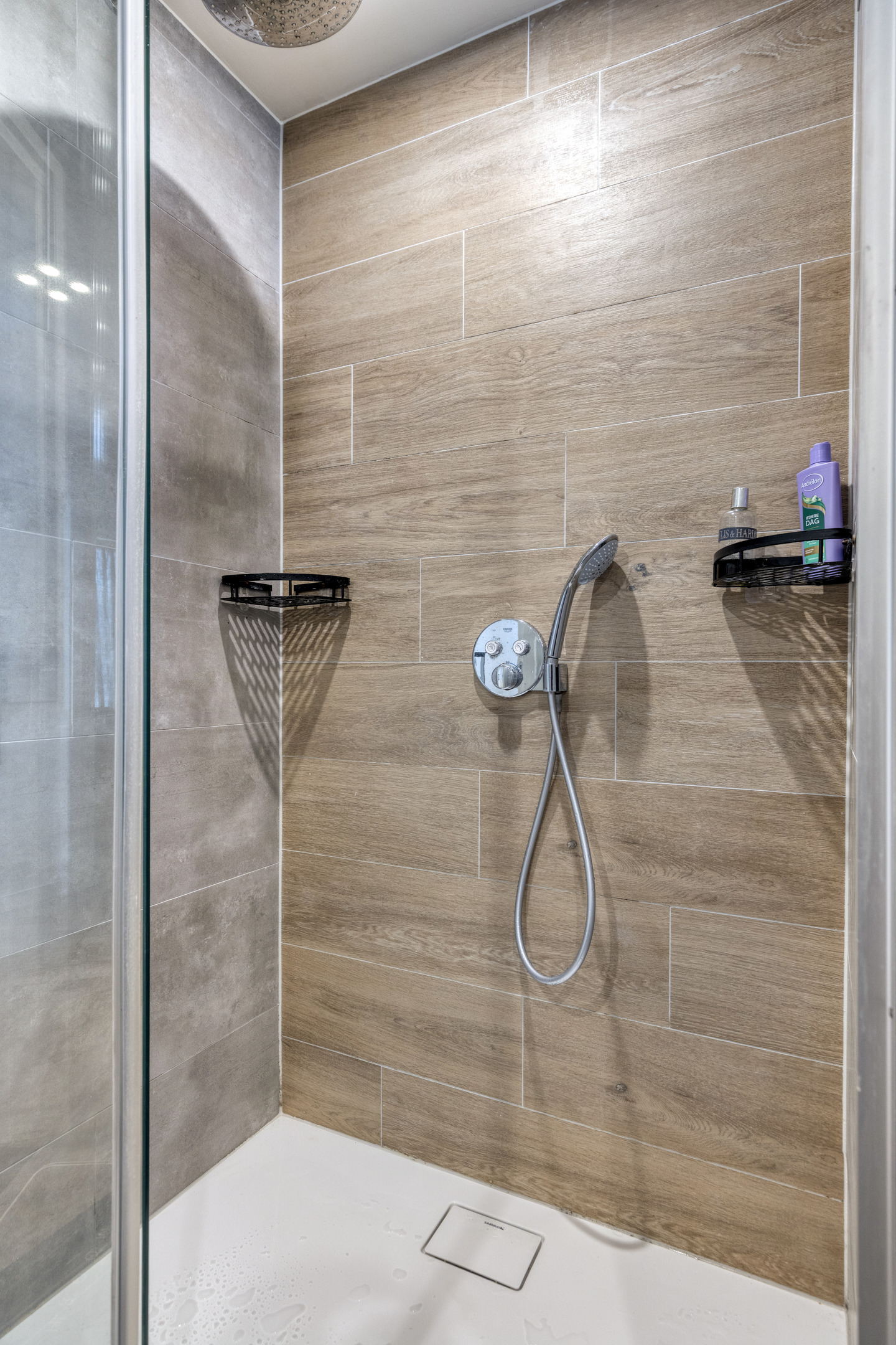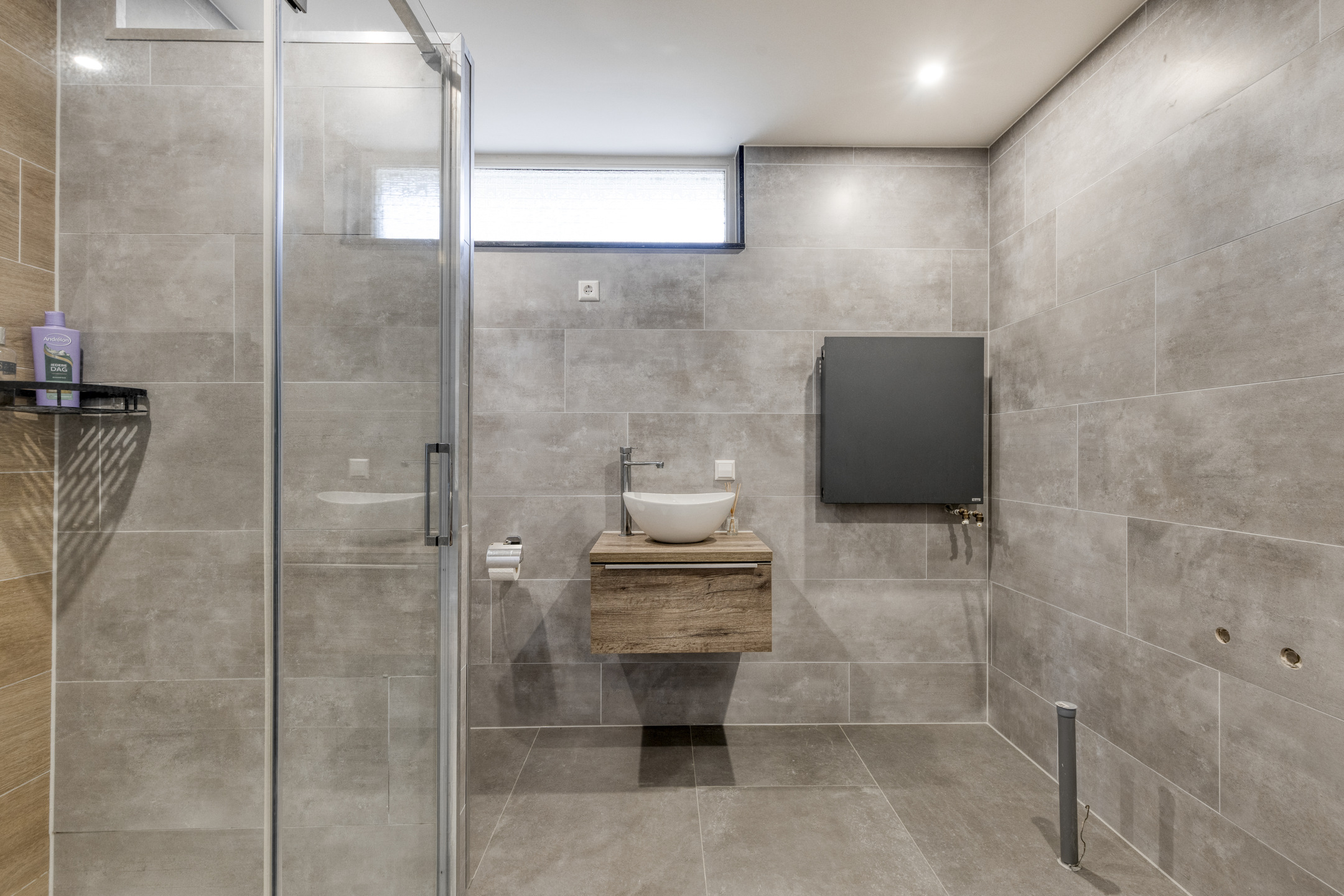 1e verdieping: ruime overloop (vergroot); ruime achterslaapkamer; grote achterslaapkamer; grote voorslaapkamer; moderne badkamer (vergroot) v.v. grote inloopdoucheruimte met glazen wanden, vrijhangend 2e toilet en wastafelmeubel; de 1e verdieping is modern afgewerkt met een pvc vloerafwerking en glad gestuukte wanden en plafonds.