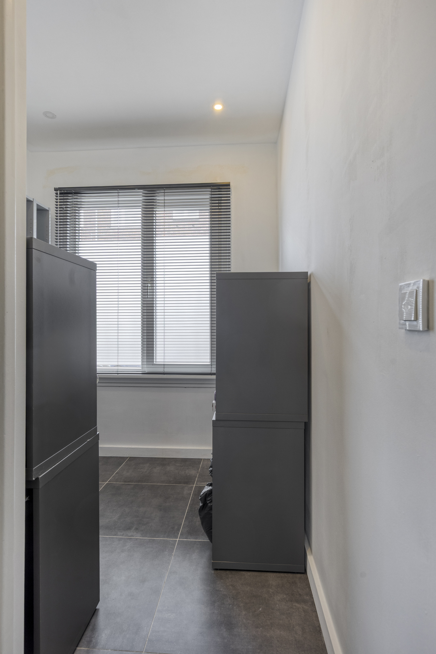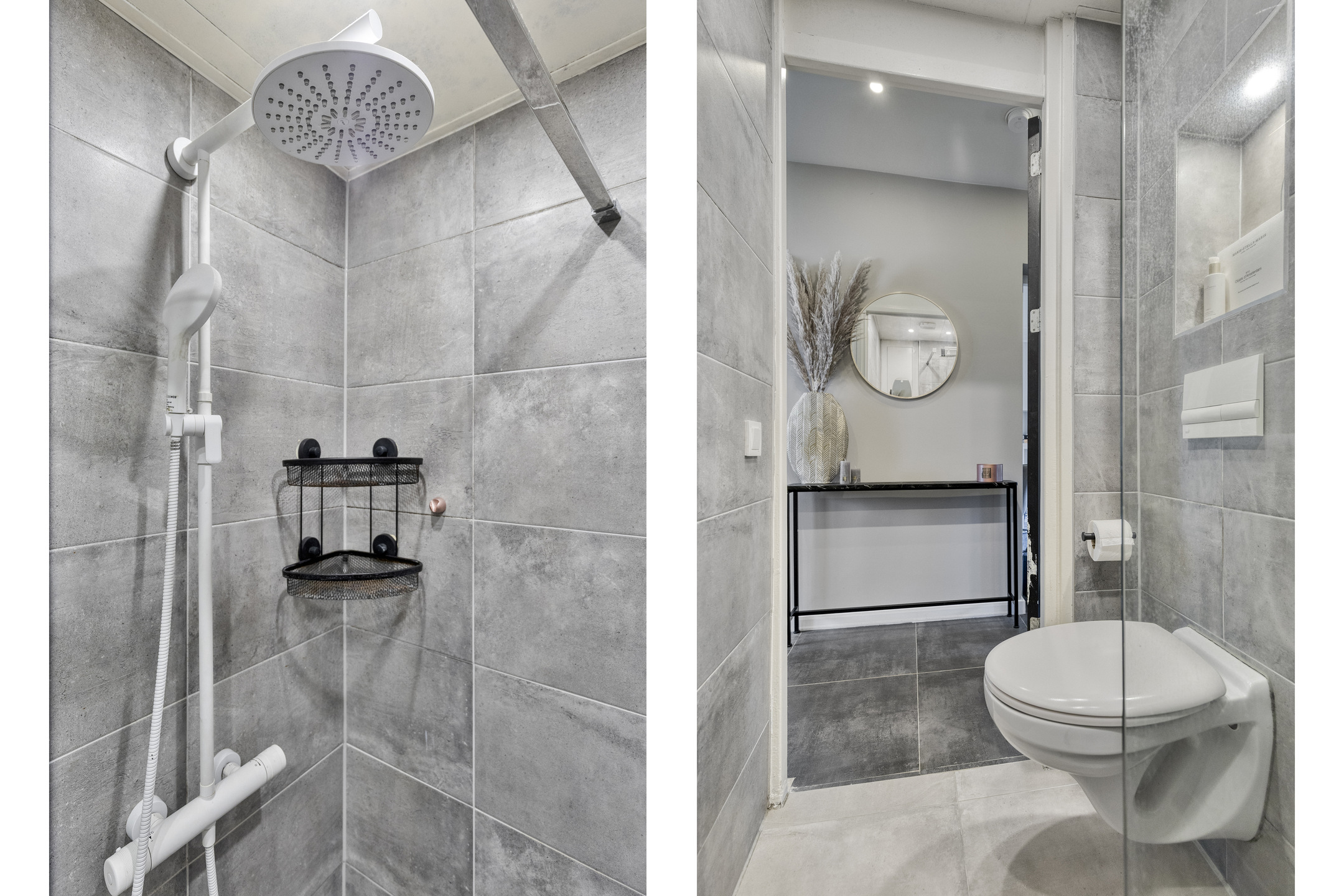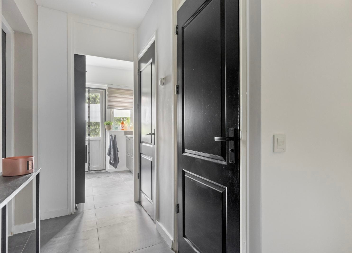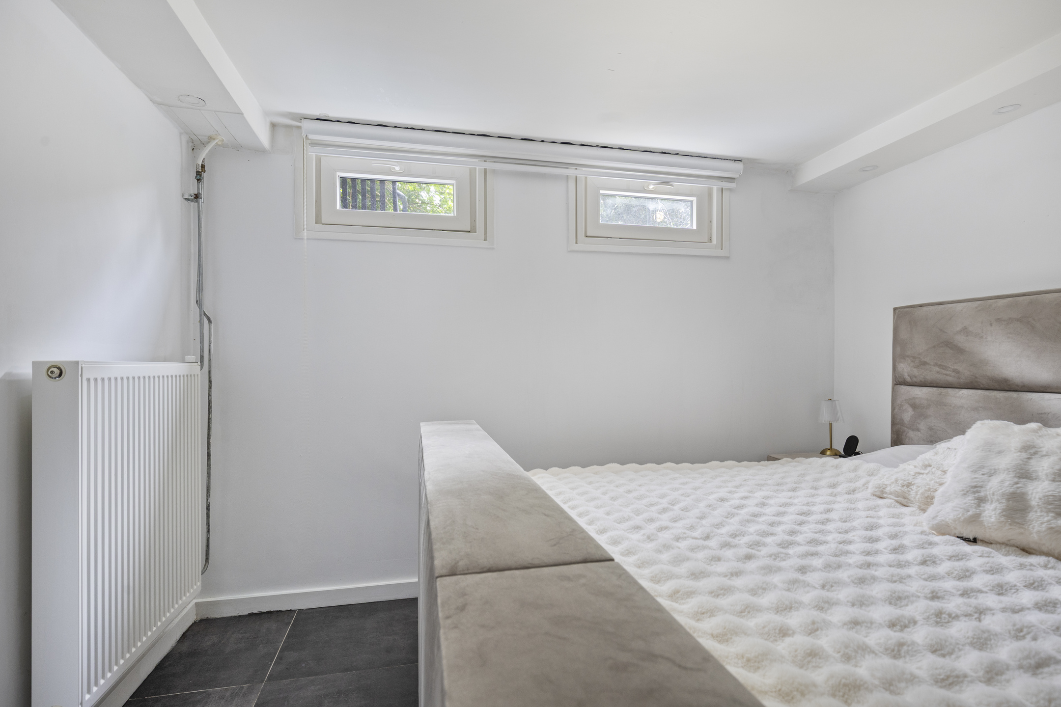 Woning: entree/hal met meterkast, moderne badkamer v.v. inloopdouche, wastafel en vrijhangend toilet, alsmede een kast v.v. aansluiting wasmachine en opstelling combiketel (2019); voorslaapkamer; ruime voorslaapkamer; keuken met tuindeur en een keukenopstelling (rechte opstelling en een wandopstelling) v.v. inbouwapparatuur; deze woonlaag is fraai modern afgewerkt met glad gestuukte wanden en plafonds (met inbouwverlichting), alsmede een plavuizen vloer met hoofdvloerverwarming; interne trap naar het souterrain, met ruime 3e slaapkamer, tevens afgewerkt met plavuizen en glad stuukwerk.