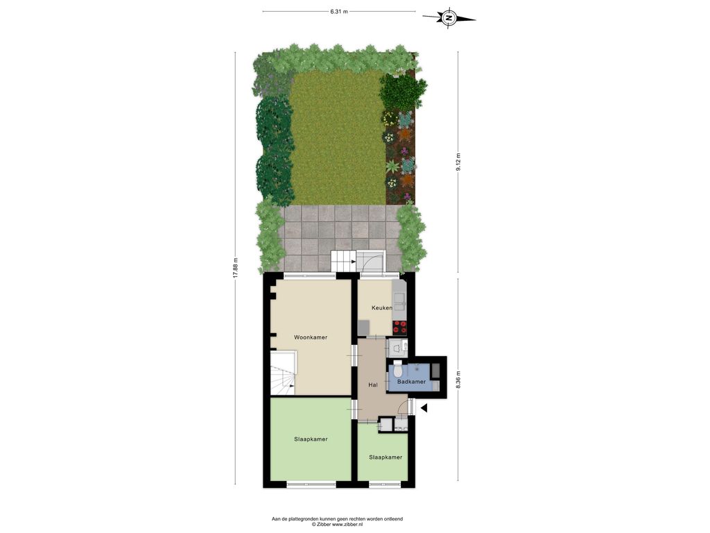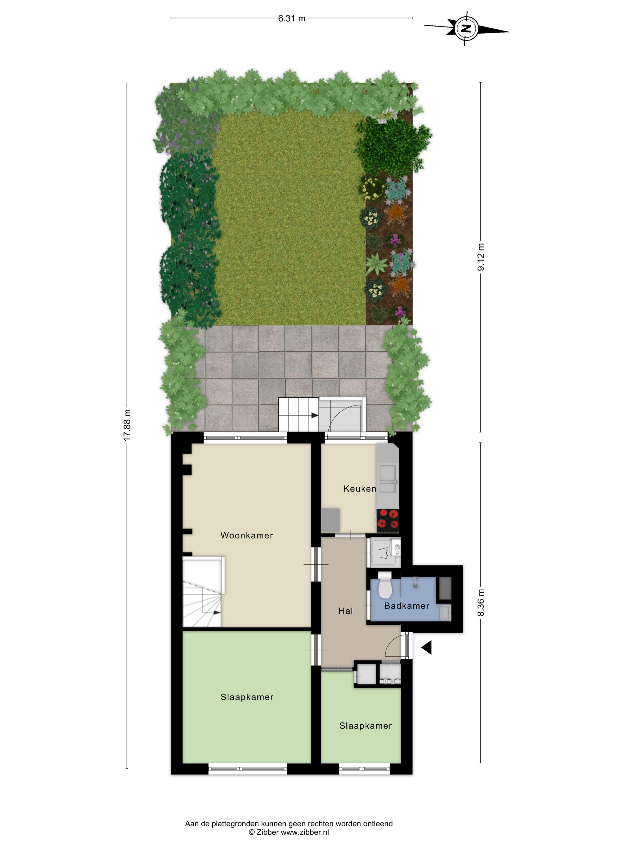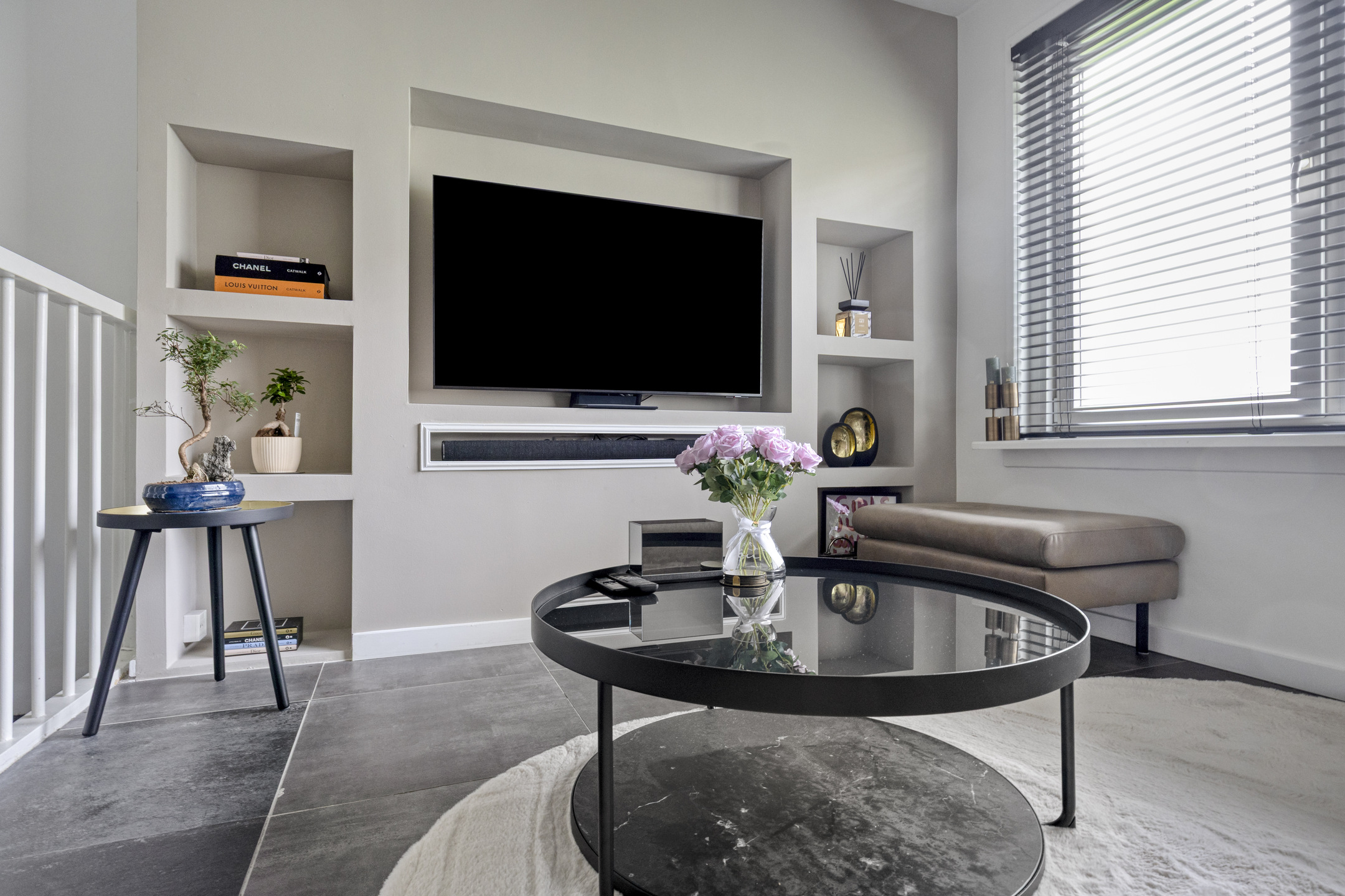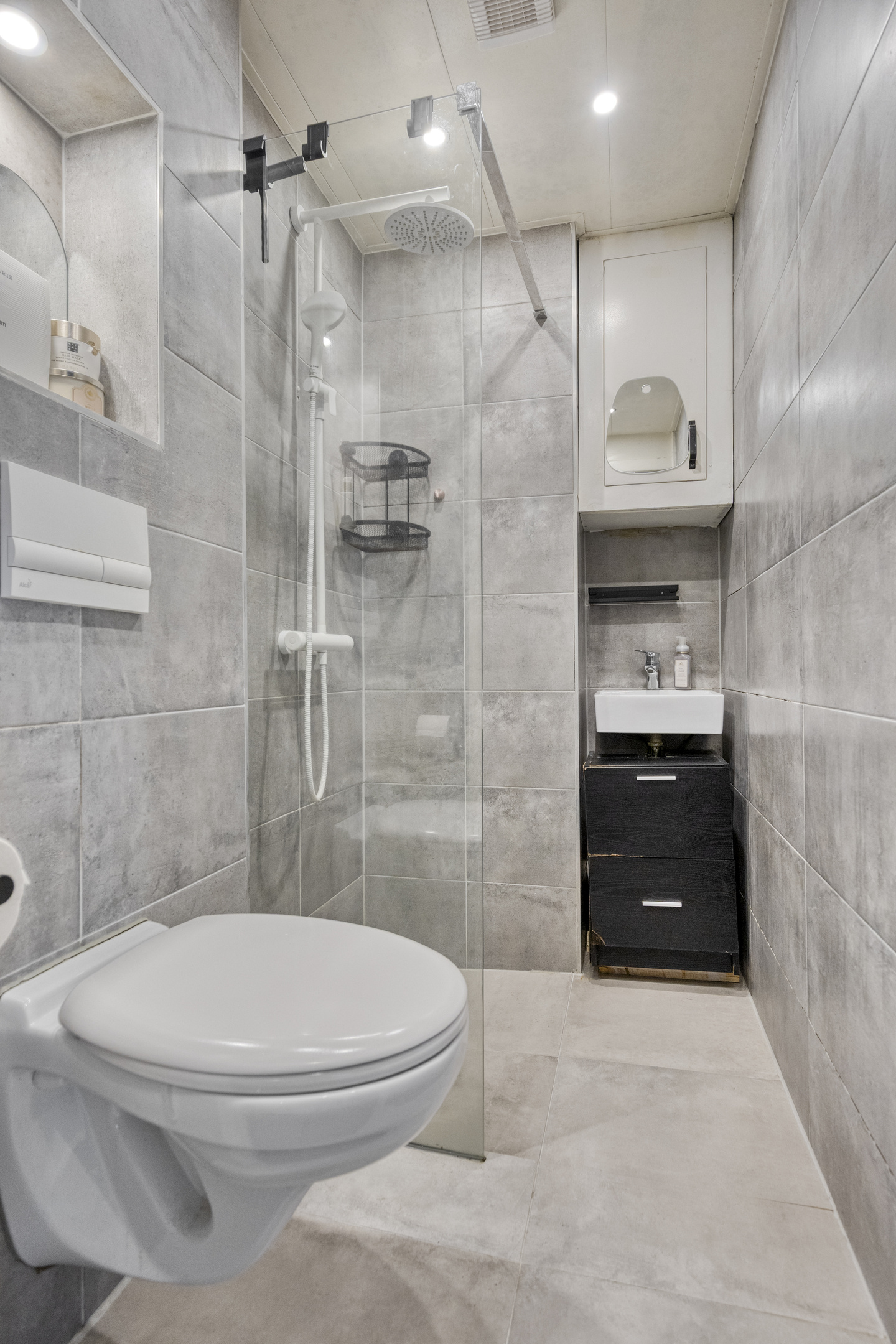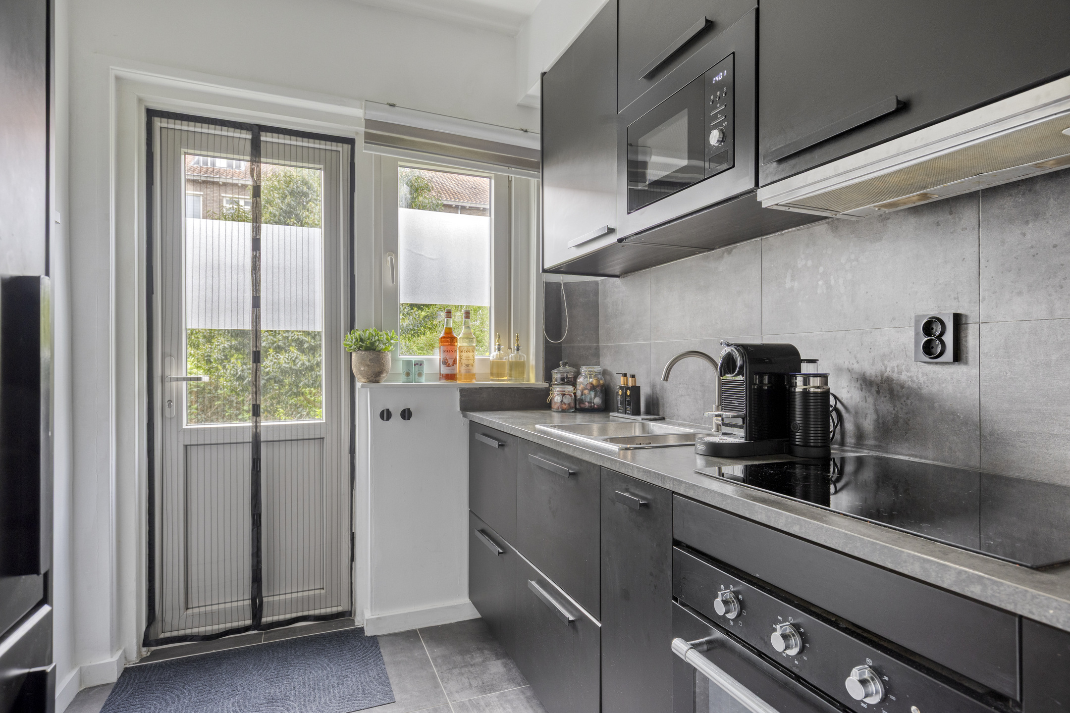 Woning: entree/hal met meterkast, moderne badkamer v.v. inloopdouche, wastafel en vrijhangend toilet, alsmede een kast v.v. aansluiting wasmachine en opstelling combiketel (2019); voorslaapkamer; ruime voorslaapkamer; keuken met tuindeur en een keukenopstelling (rechte opstelling en een wandopstelling) v.v. inbouwapparatuur; deze woonlaag is fraai modern afgewerkt met glad gestuukte wanden en plafonds (met inbouwverlichting), alsmede een plavuizen vloer met hoofdvloerverwarming; interne trap naar het souterrain, met ruime 3e slaapkamer, tevens afgewerkt met plavuizen en glad stuukwerk.