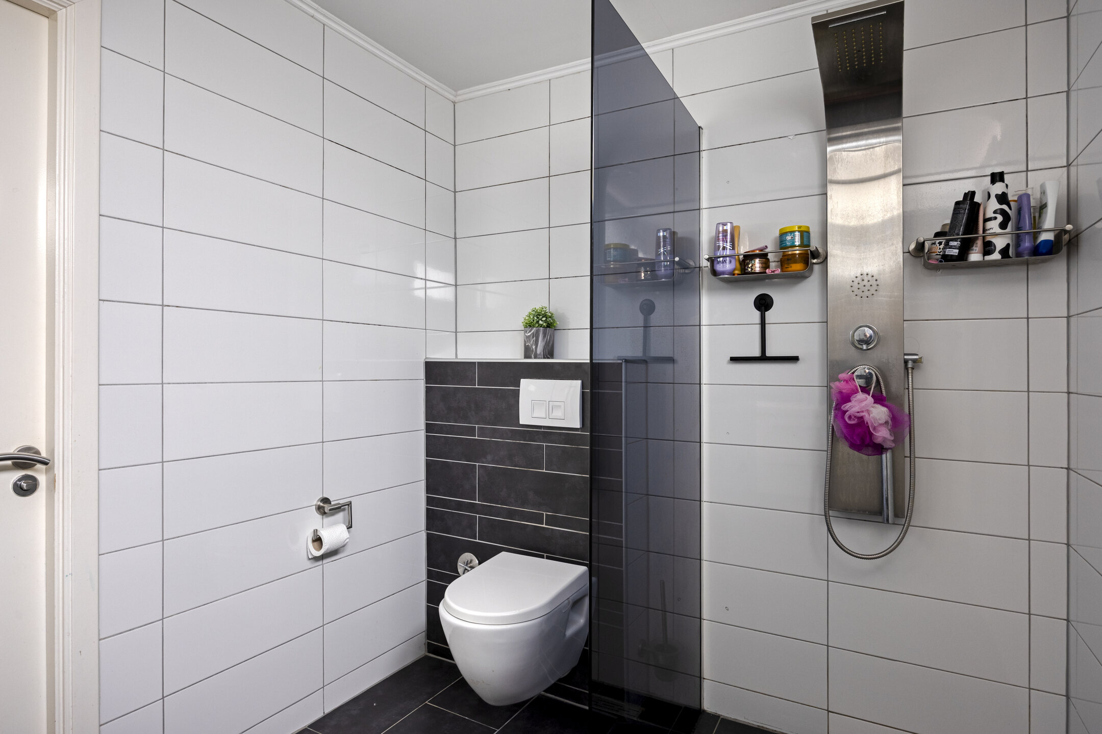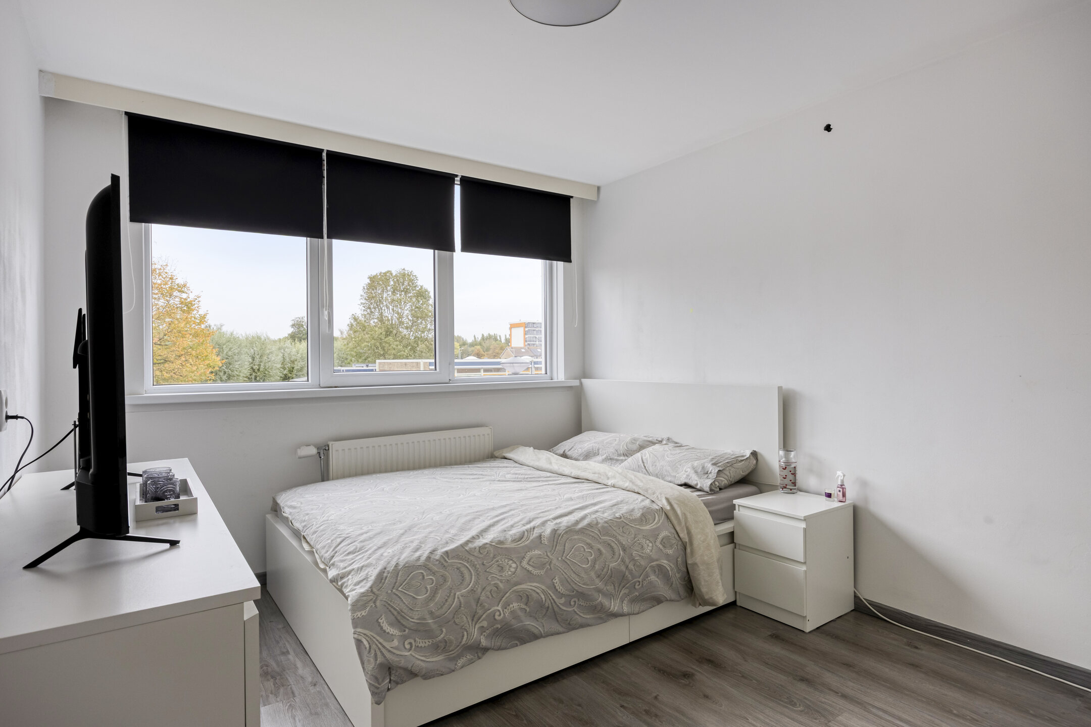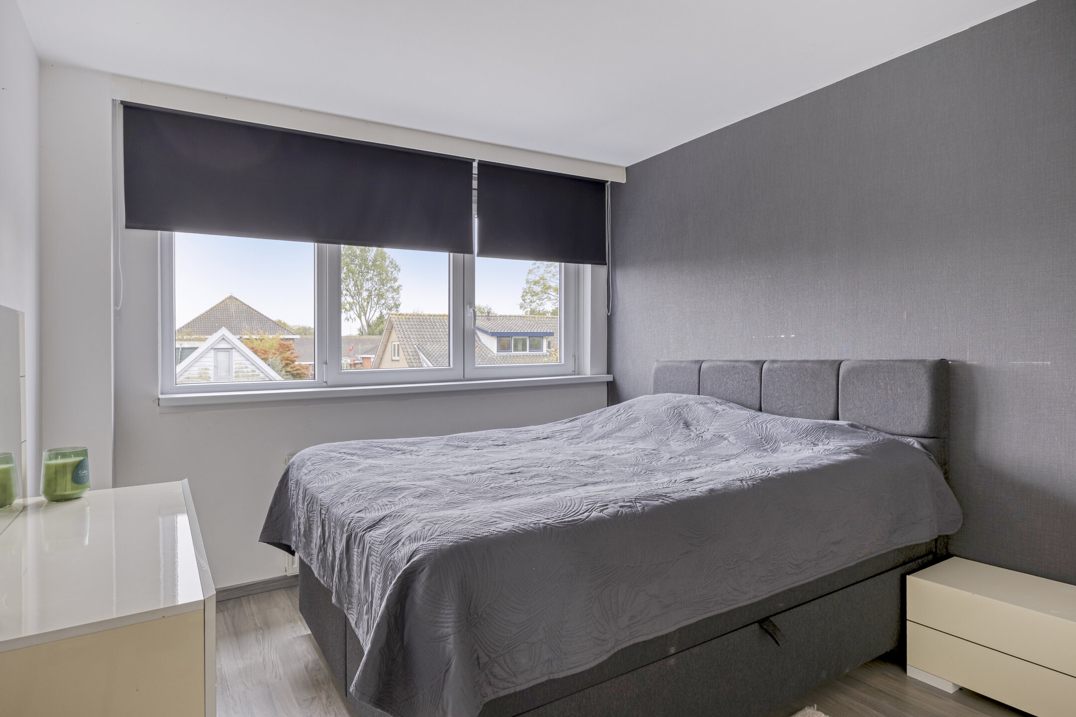 1e verdieping: ruime overloop; achterslaapkamer van 8 m2; ruime achterslaapkamer van 13 m2; ruime voorslaapkamer van 12 m2; ruime moderne badkamer met inloopdouche, vrijhangend 2e toilet, designradiator en wastafelmeubel; de 1e verdieping heeft rechte gevels en is modern afgewerkt met laminaatvloer, grotendeels glad gestuukte wanden en glad gestuukte plafonds