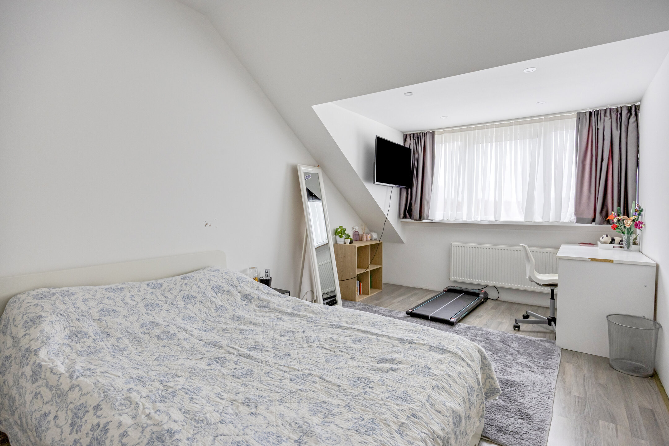 2e verdieping: vaste trap; overloop met tuimelraam en aansluiting wasmachine; achterslaapkamer van 8 m2, opstelling combiketel (Remeha HR, 2021); royale 5e slaapkamer van 25 m2 inclusief een schuifkastenwand (bergruimte); de 2e verdieping heeft een brede dakkapel aan de achterzijde (2021), bergruimten en is modern afgewerkt met laminaatvloer, glad gestuukte wanden en glad gestuukte plafonds & dakafwerking.