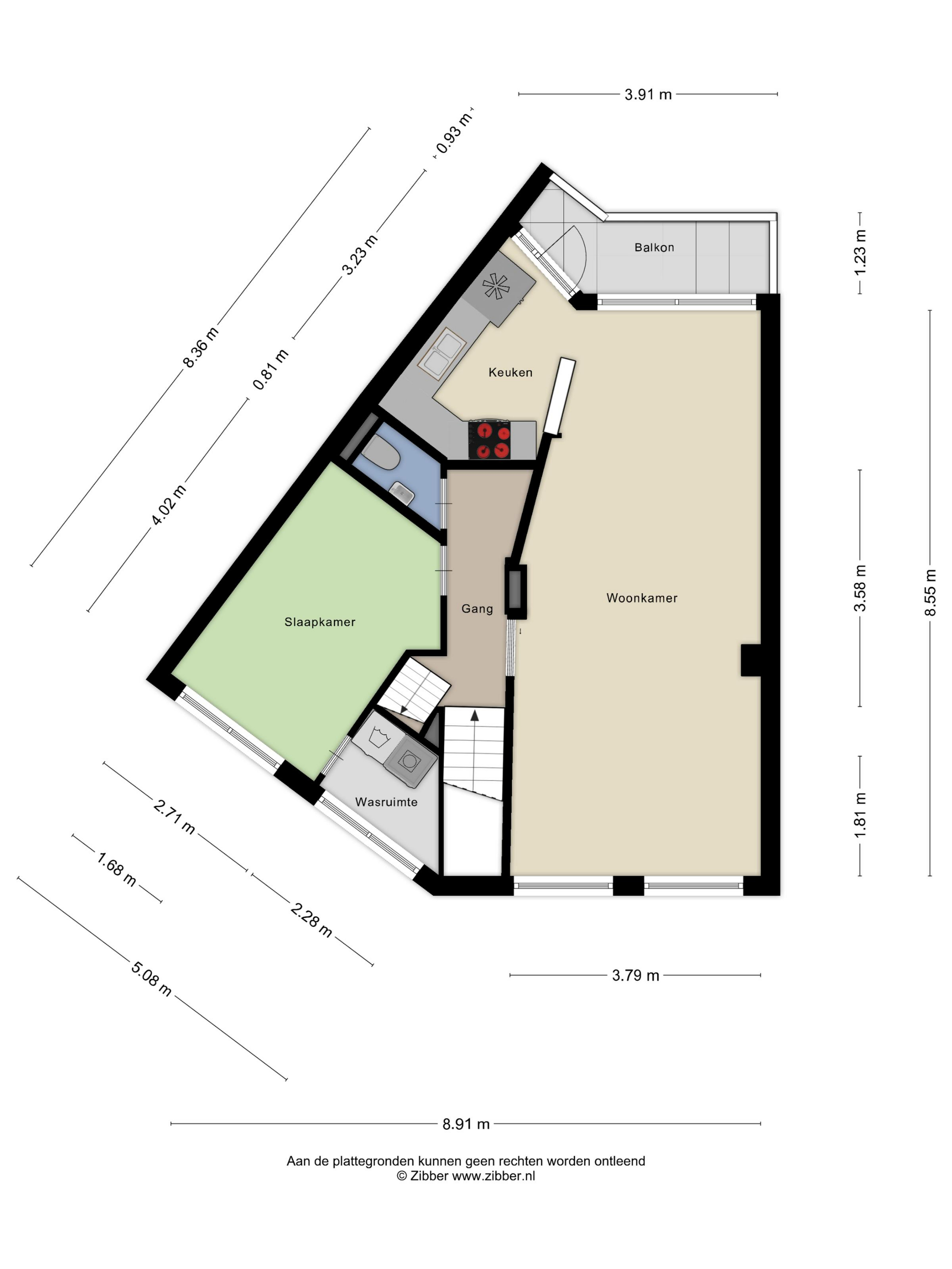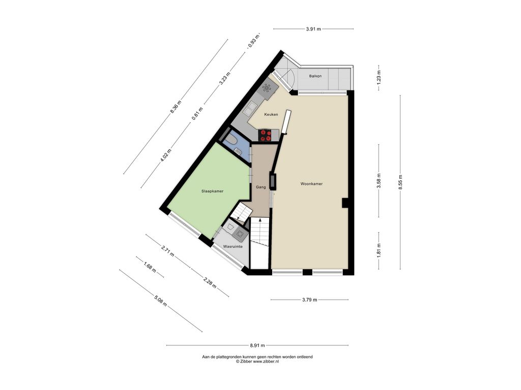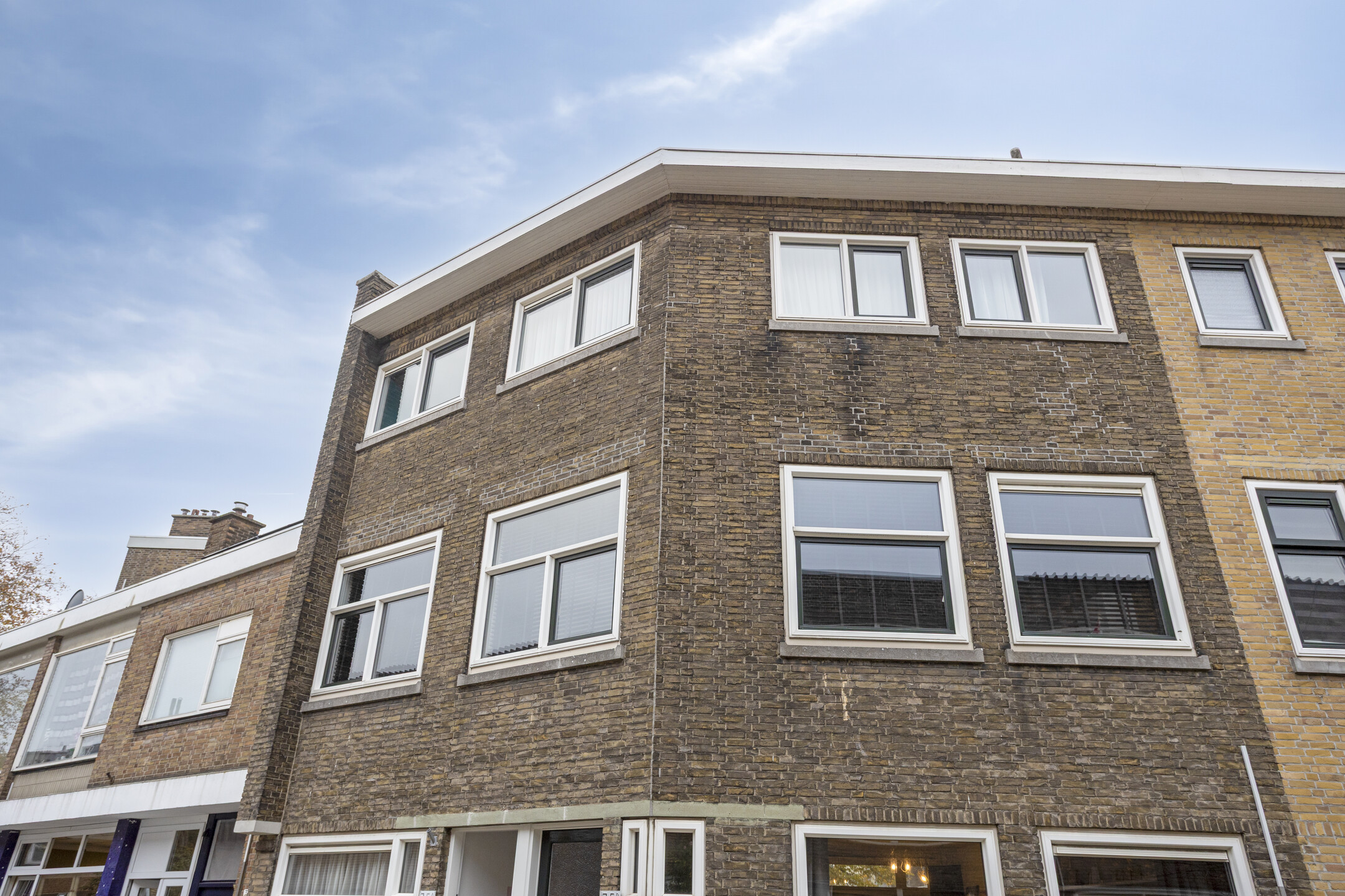 De dubbele bovenwoning heeft een eigen entree op de begane grond en twee woonlagen, en heeft een hoekvorm met brede voorgevel waardoor de woning een unieke speelse indeling heeft.