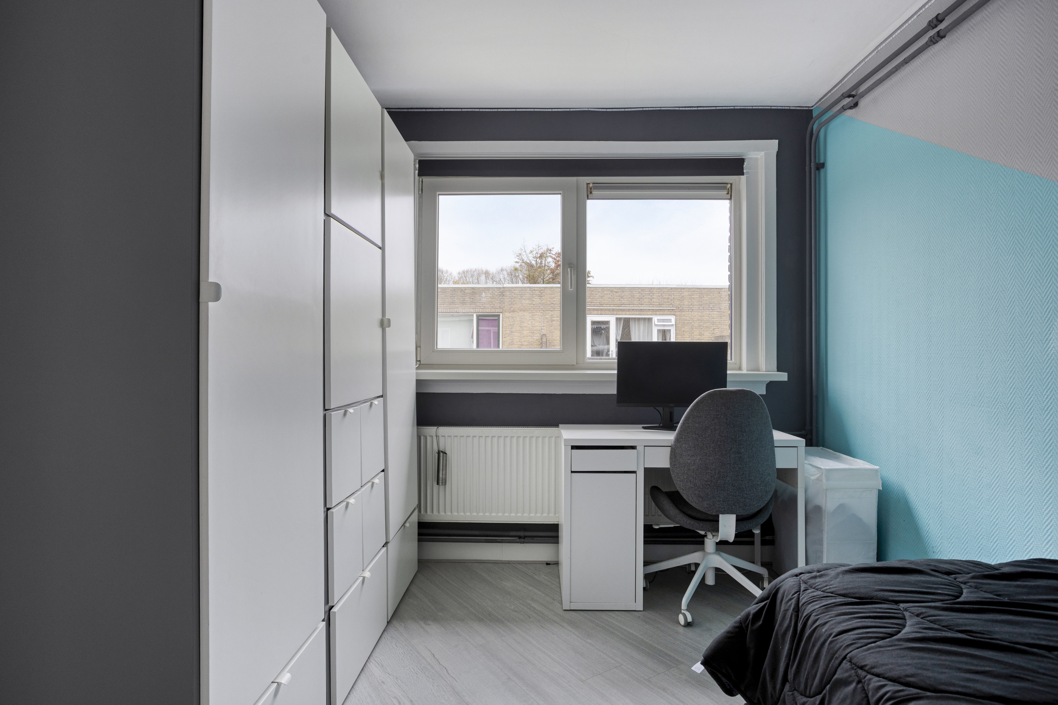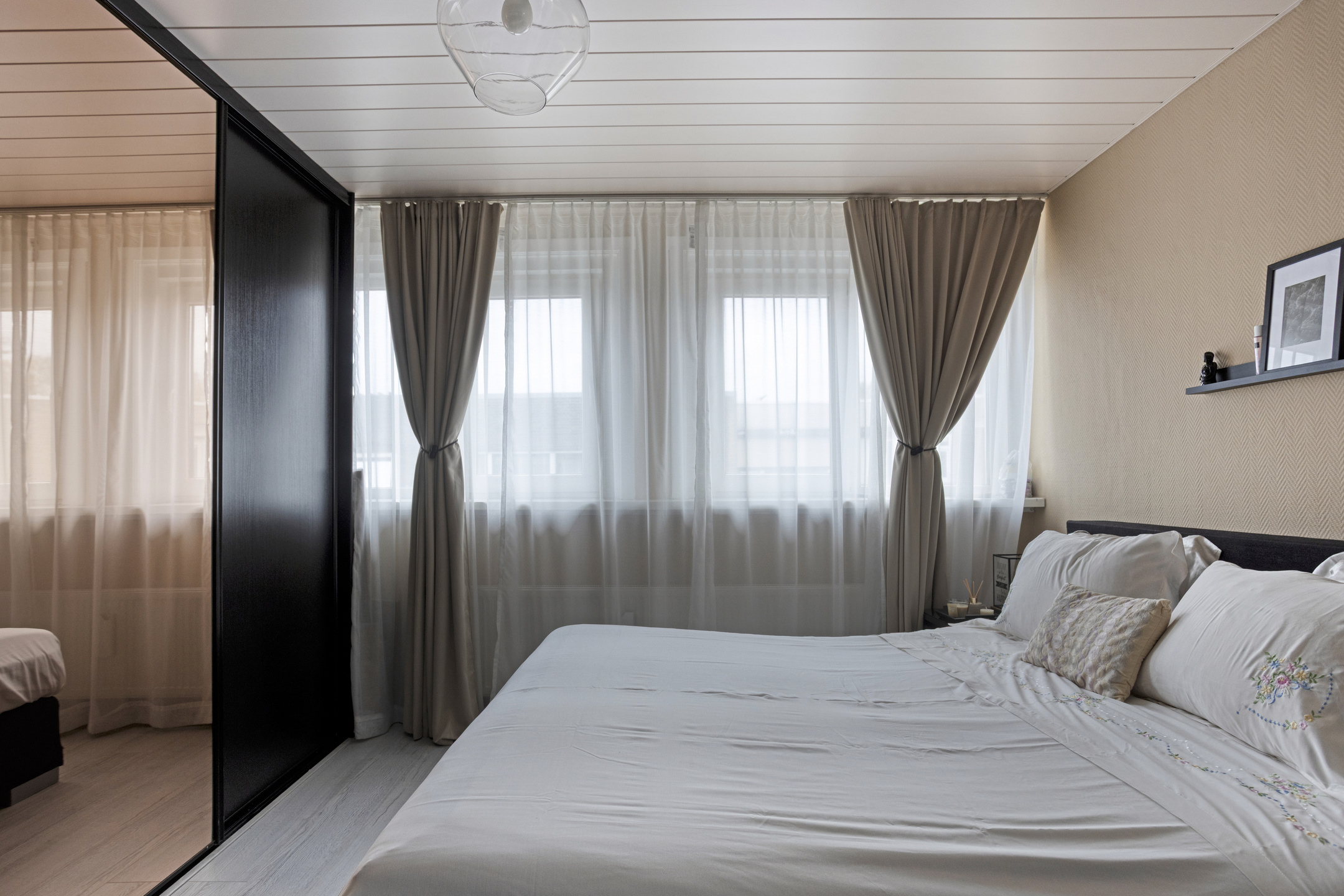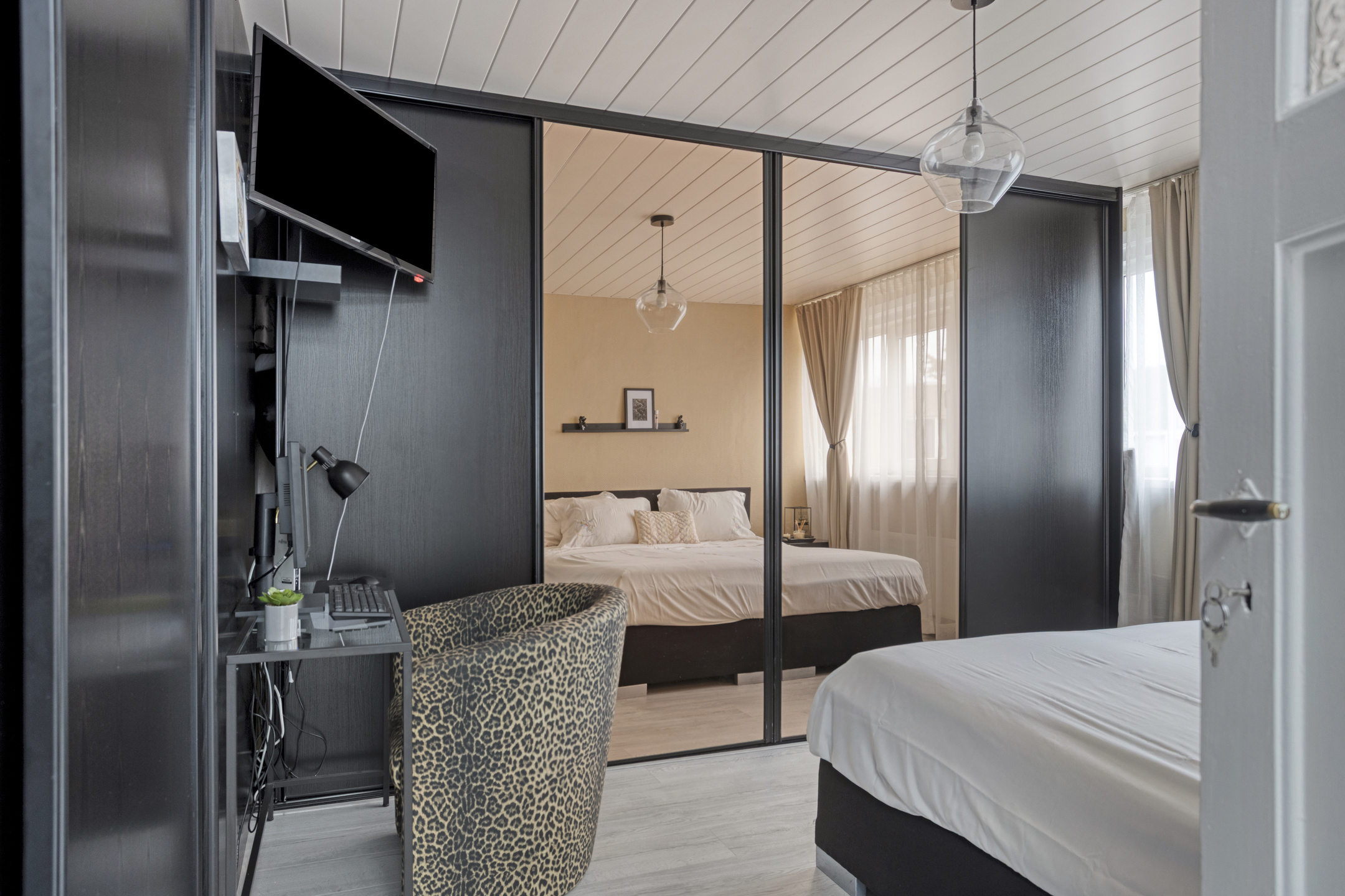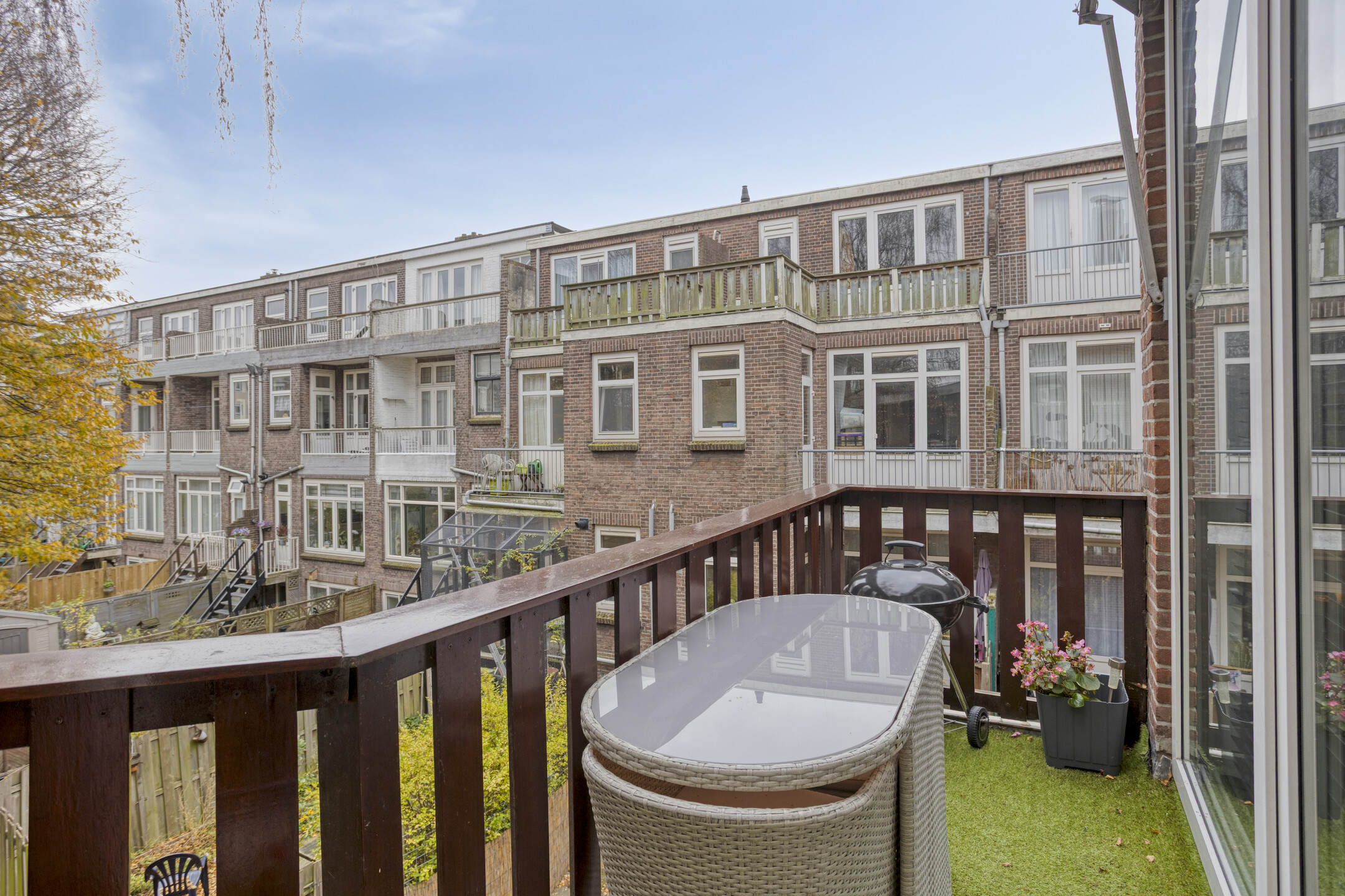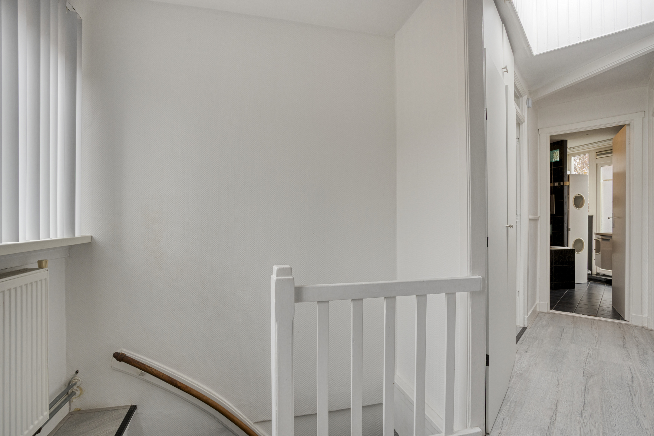 2e woonlaag: overloop/gang met kastruimte (mogelijkheid om hier de combiketel te plaatsen), met dakvenster; royale voorslaapkamer van 15 m2 met vaste kast en schuifkastenwand; grote achterslaapkamer van 13 m2 met vaste kasten en kozijn v.v. openslaande deuren naar het 2e balkon; badkamer met separate deur naar het balkon, opstelling combiketel (2020), ligbad met douchscherm en whrilpool, wastafelmeubel en handoekradiator; grote voorslaapkamer van 11 m2; de 2e woonlaag heeft rechte gevels, een 2e balkon aan de achterzijde en is afgewerkt met deels glad gestuukte wanden en laminaatvloeren van 2025.